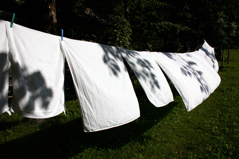 A Group of clean Cloths on shiny day ,jumping with hanger